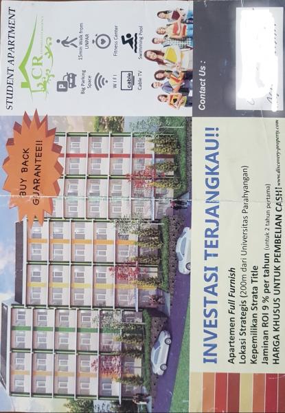 - Facility: Parkir luas, suasana nyaman aman, wifi, TV kabel, strata title, furnished.