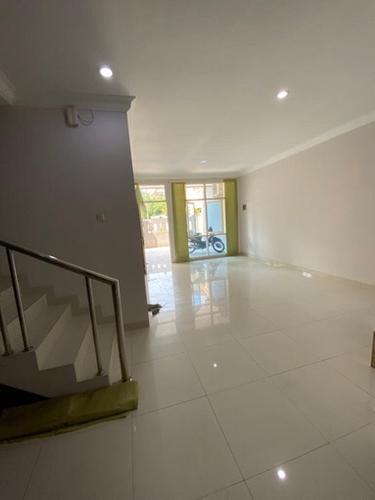 Lt 100m2, uk 5x20m, 3 lantai, SHM, 3+1kt, 3+1km, hadap timur, 2 carport, 2200 watt, air pam, bebas banjir, lokasi bagus depan taman